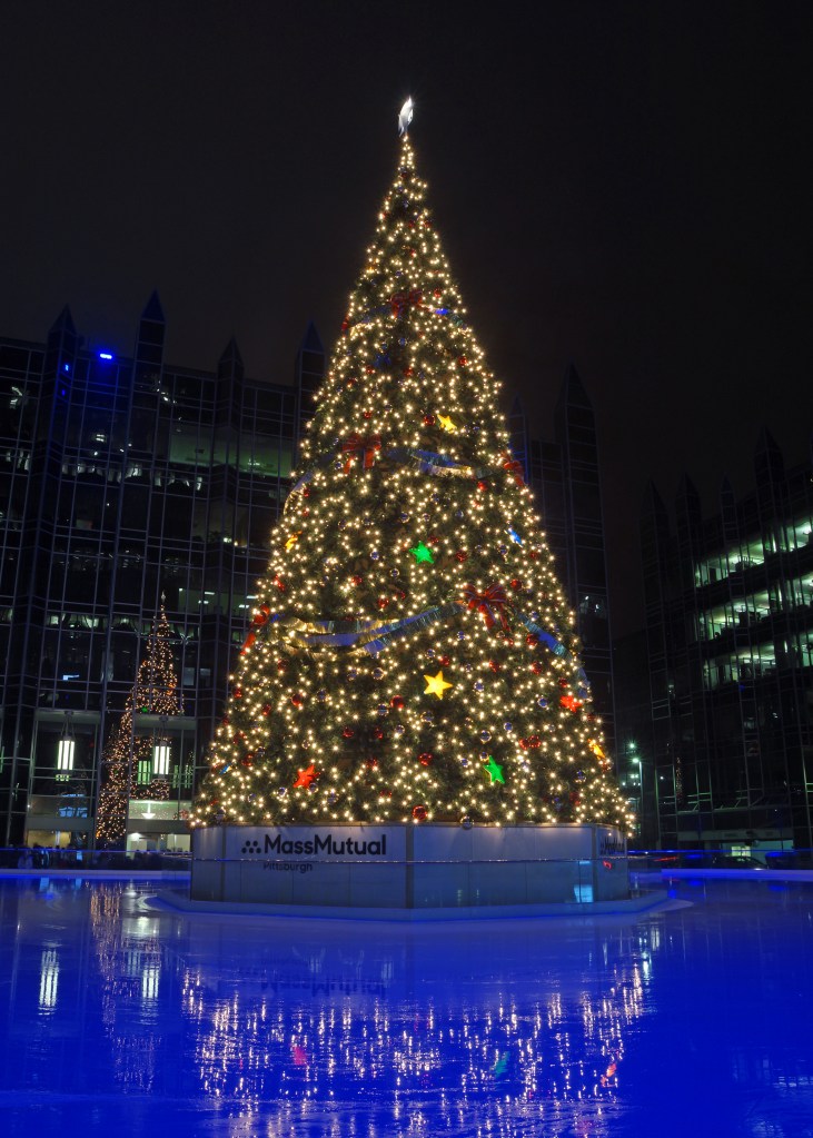 The centerpiece of PPG Plaza during the holiday season is the 73-foot tall Christmas tree. The tree has been there since 1991 and is currently surrounded by a public skating rink that was built in 2001.