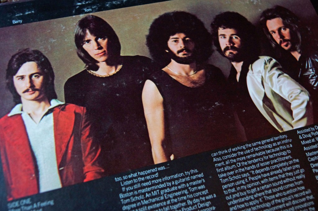 The album cover instantly propels your mind into an other-wordly existence, matching the musical themes emanating from those deep vinyl grooves. Great album art should kick start the musical emotions and listening expectations. Before the needle ever touches the surface of the record, the listener has already begun his journey of imagination as the record slides out of the sleeve. Album art does that! Digital downloading is convenient, but it has robbed the listener of the musical foreplay necessary to fully enjoy the entire experience of the album. The visual and the auditory combine in the perfect measure with this Boston album, taking us to another place. Where are you going in your mind when you see this album cover? What place will you visit as you hear the message in the songs? Tom Scholz, the band’s guitarist and songwriter, in his own words about the song, More Than a Feeling: “It’s a piece of music that really takes me to someplace else when I listen to it. Which is my criteria for whether a recording I come up with is worthy of going on a Boston album. I shut my eyes and I play it at the end of a long day in the studio. If I still enjoy it, and it takes me some place else, and I forget about all that I had to go through that day, then it’s a winner. “More than a Feeling” did that for me.”