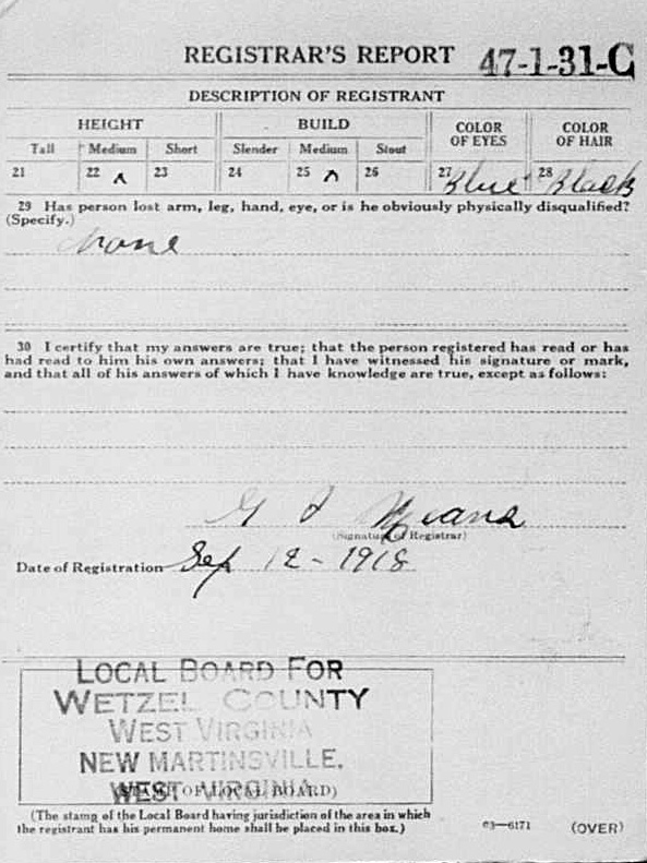 “United States World War I Draft Registration Cards, 1917-1918.” Database with images. FamilySearch. http://FamilySearch.org : 25 October 2020. Citing NARA microfilm publication M1509. Washington D.C.: National Archives and Records Administration, n.d.
