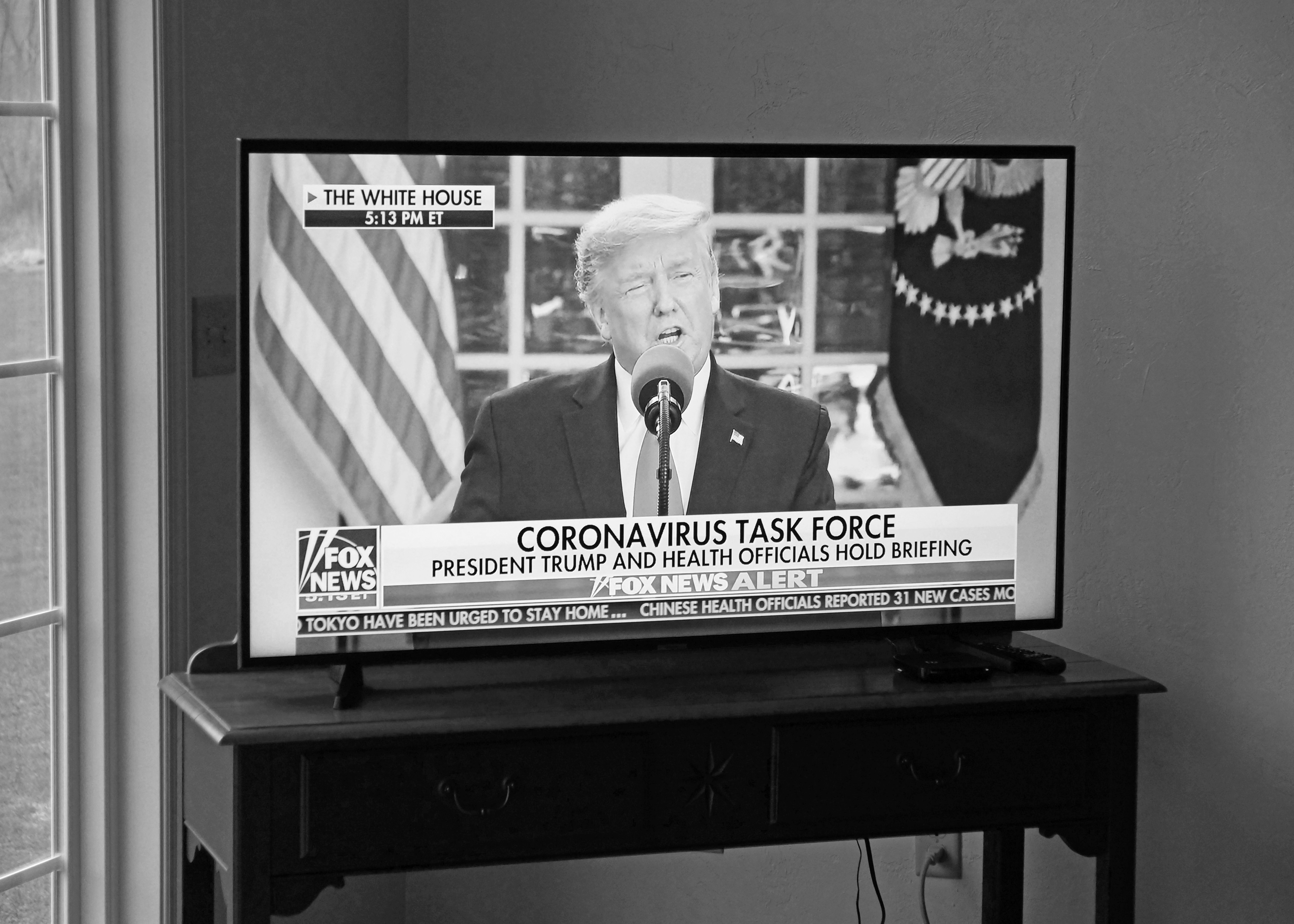 March 30, 2020 President Trump and his corona virus task force update America on the status of the pandemic and what the strategy is going to be. Photo taken on March 30 from a Fox News broadcast.