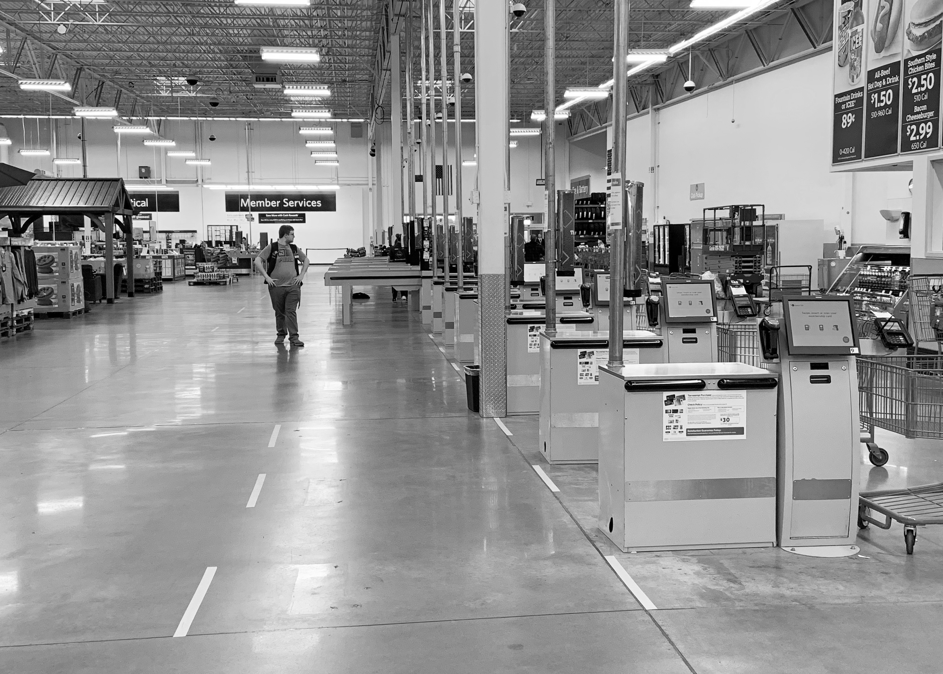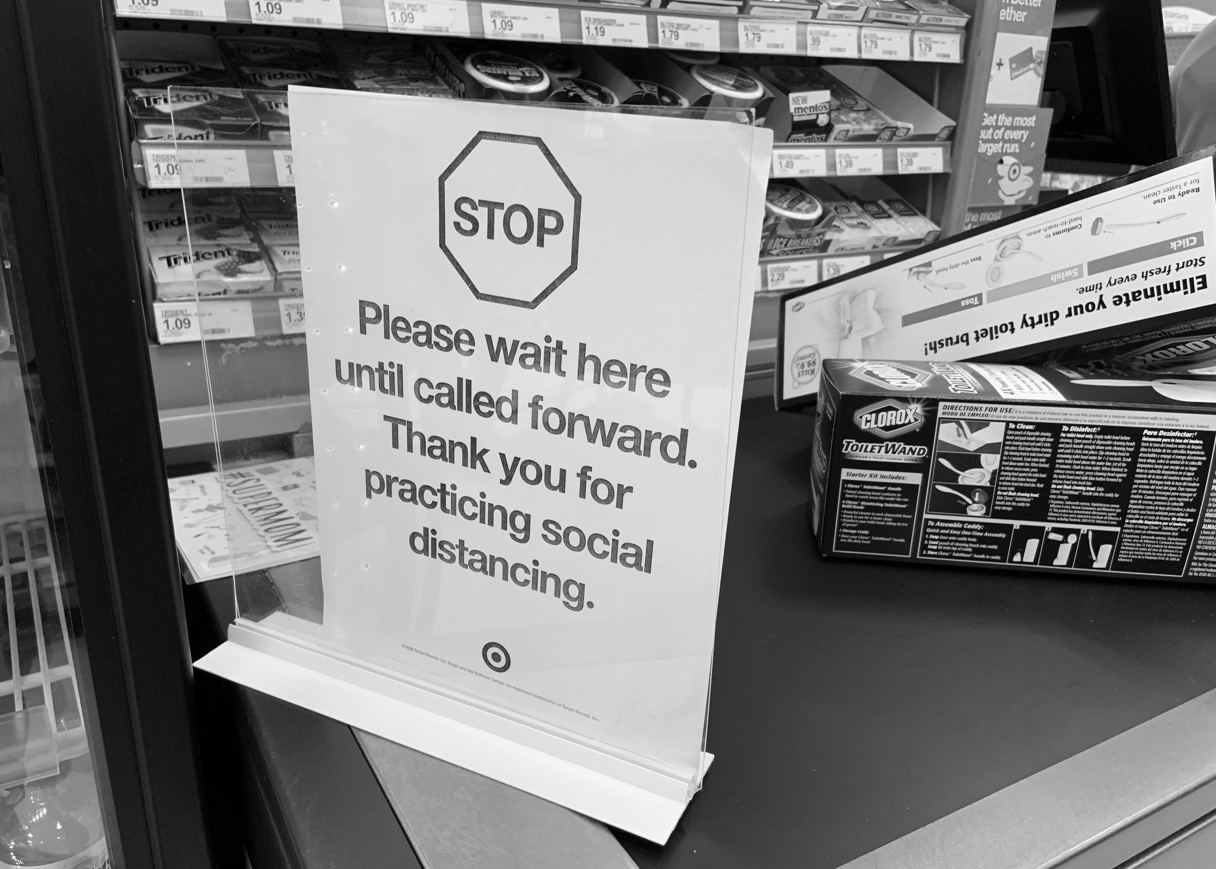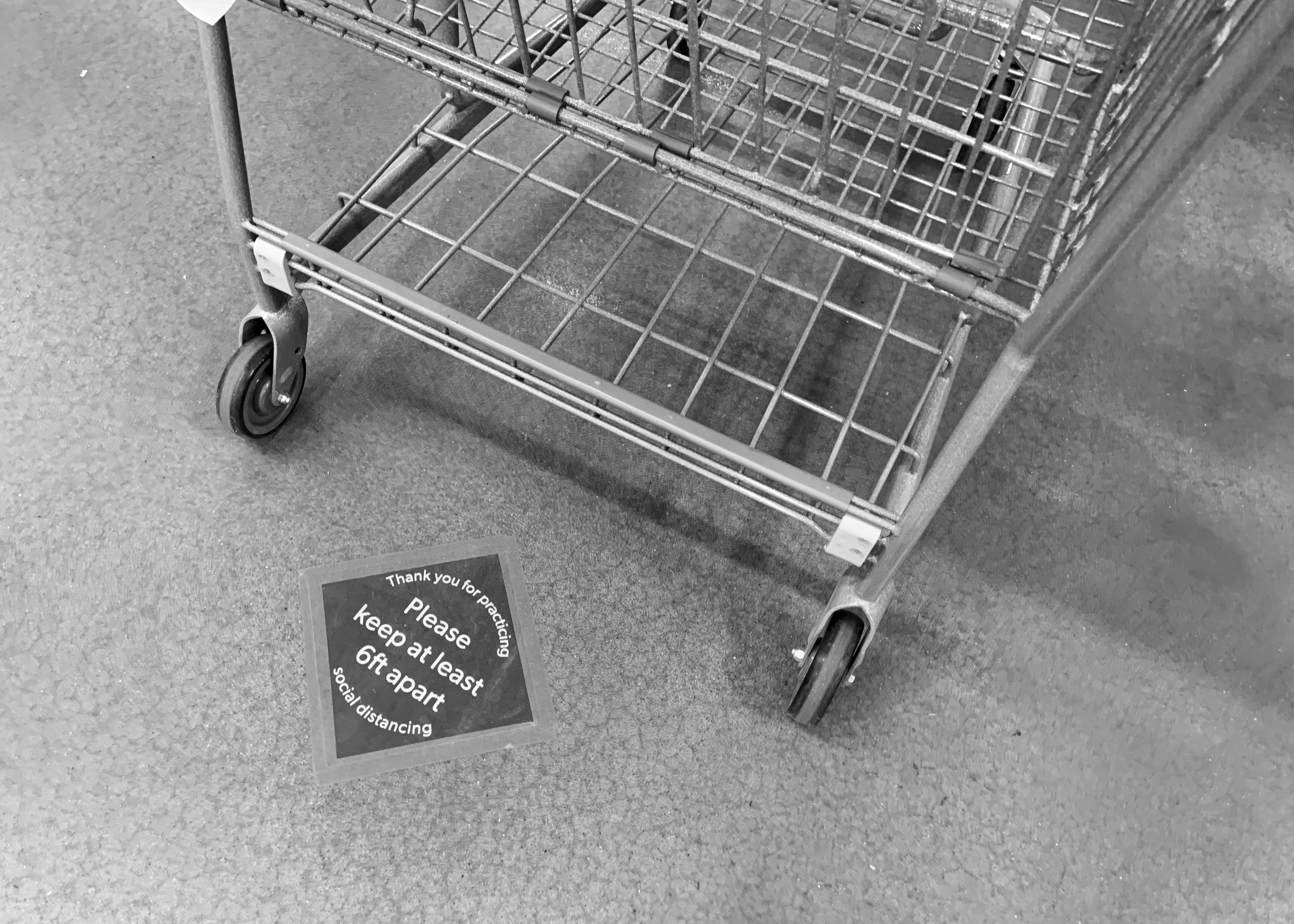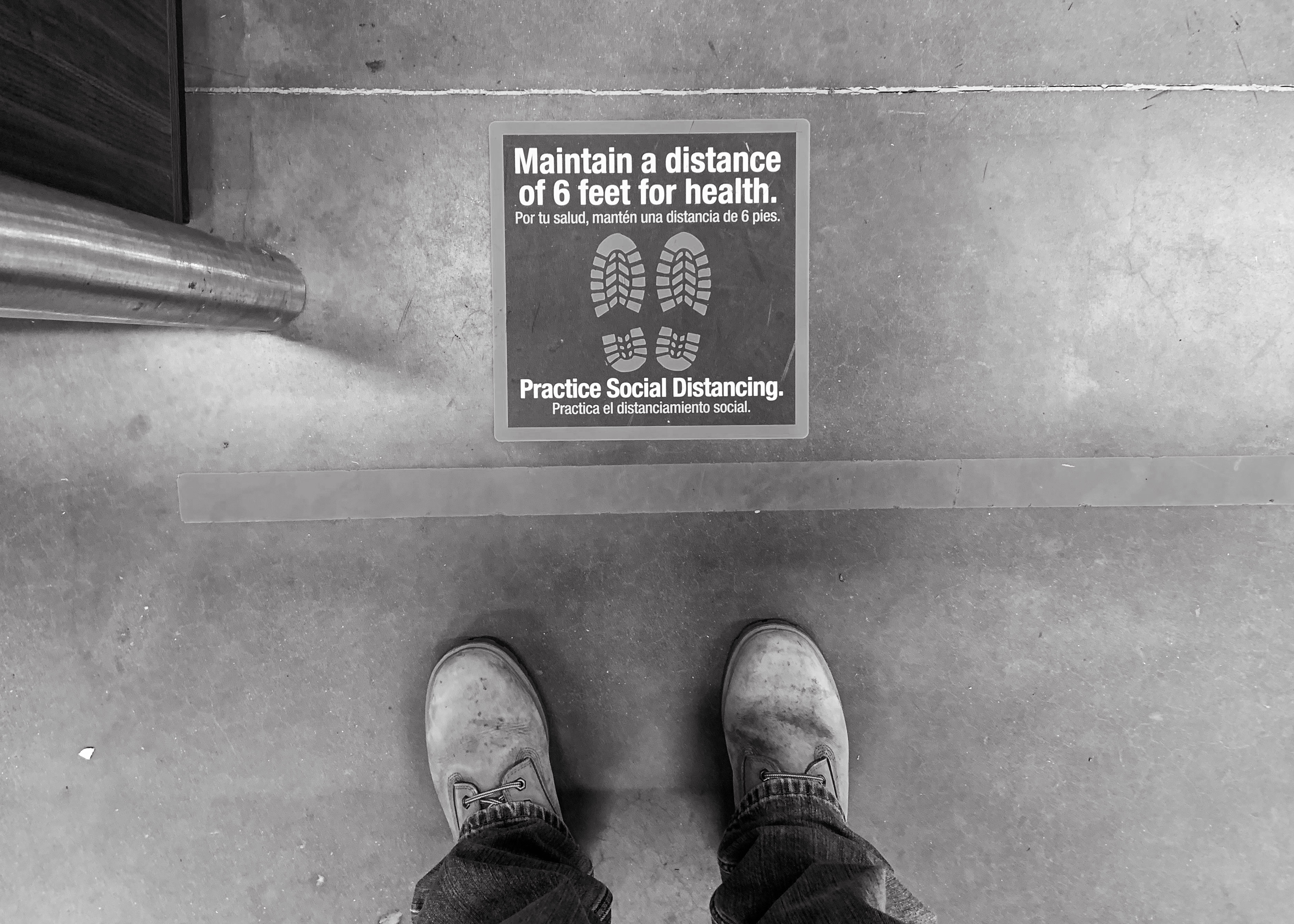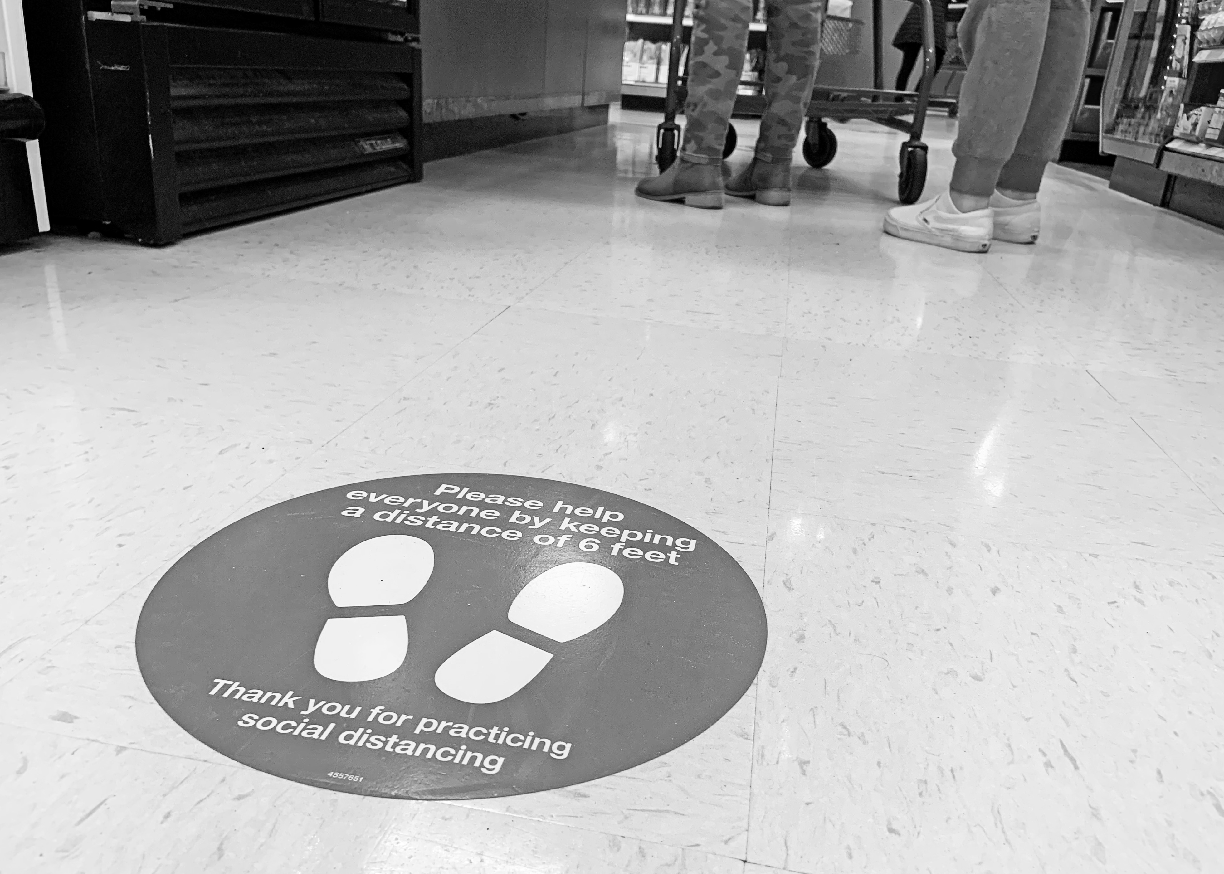 April 23, 2020 Floor stickers: to eliminate any confusion as to where one ought to stand. Home Depot, Sheetz, Target and Sam's Club, Butler PA.