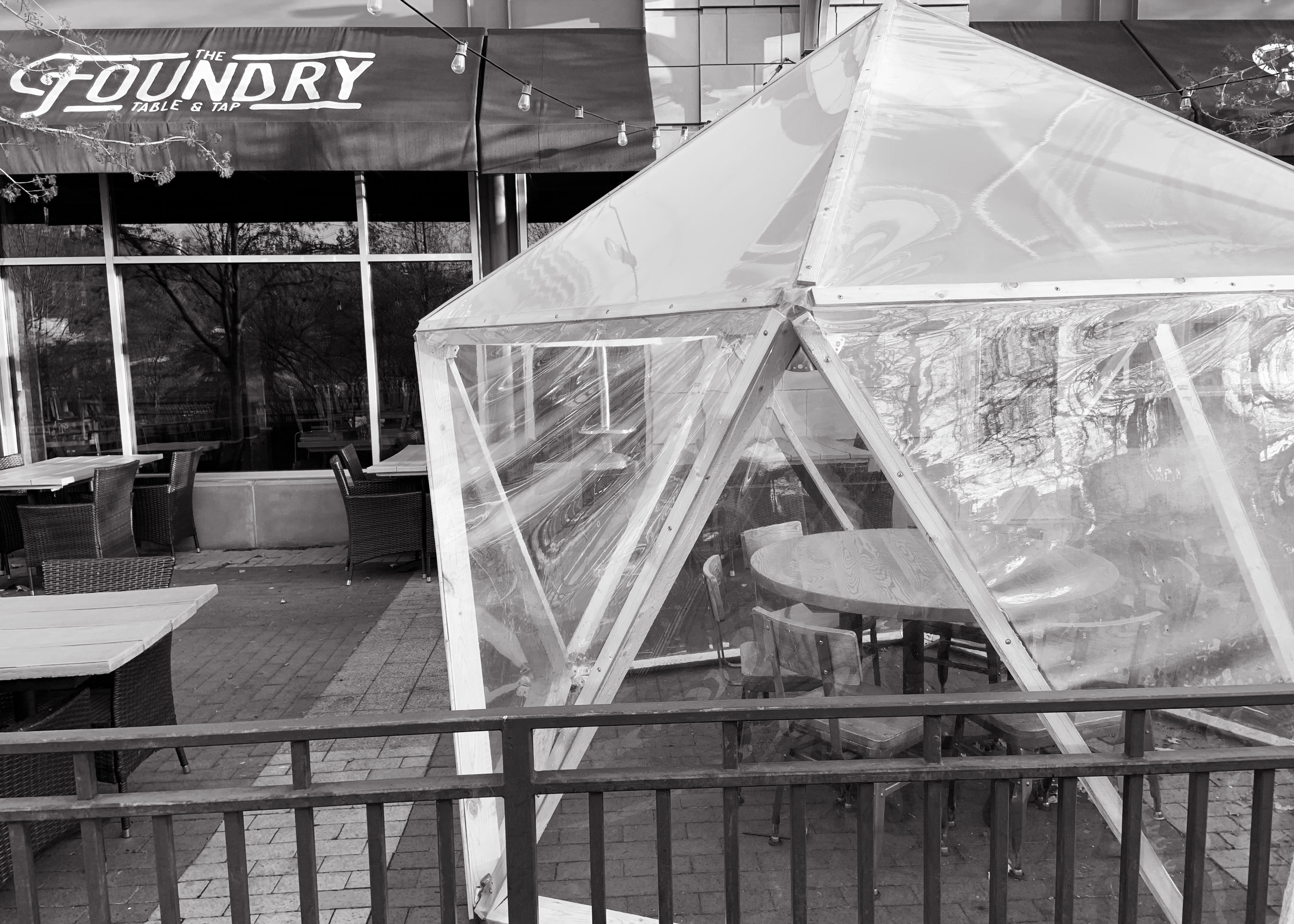 March 27, 2021 It’s been over a year. We’re still overwhelmed by fear and panic... but not enough to keep us from eating ‘out’ in one of these plastic bubbles. North Side of Pittsburgh.